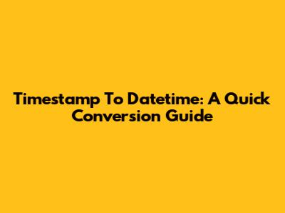 Timestamp To Datetime: A Quick Conversion Guide