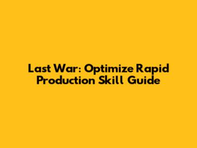 Last War: Optimize Rapid Production Skill Guide