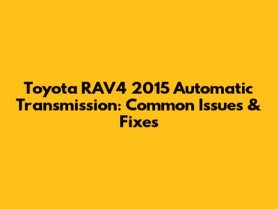 Toyota RAV4 2015 Automatic Transmission: Common Issues & Fixes