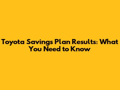 Toyota Savings Plan Results: What You Need To Know