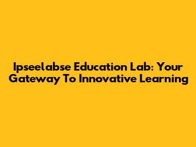 Ipseelabse Education Lab: Your Gateway To Innovative Learning