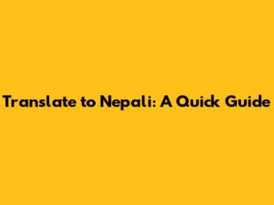 Translate To Nepali: A Quick Guide