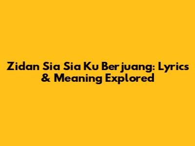 Zidan Sia Sia Ku Berjuang: Lyrics & Meaning Explored