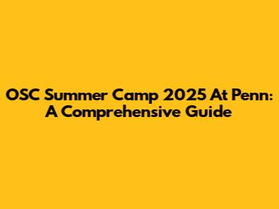 OSC Summer Camp 2025 At Penn: A Comprehensive Guide