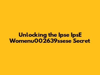 Unlocking The Ipse IpsE Womenu002639ssese Secret