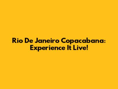 Rio De Janeiro Copacabana: Experience It Live!